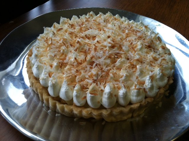Thinking again towards cool foods, I ventured into making cool desserts. I was inspired to make pies from my mom’s love for them. To me it doesn’t get any better than toasted coconut. The crispy, sweet delicate strands adorned the tart adding a contrast of texture to the cream coconut filling.