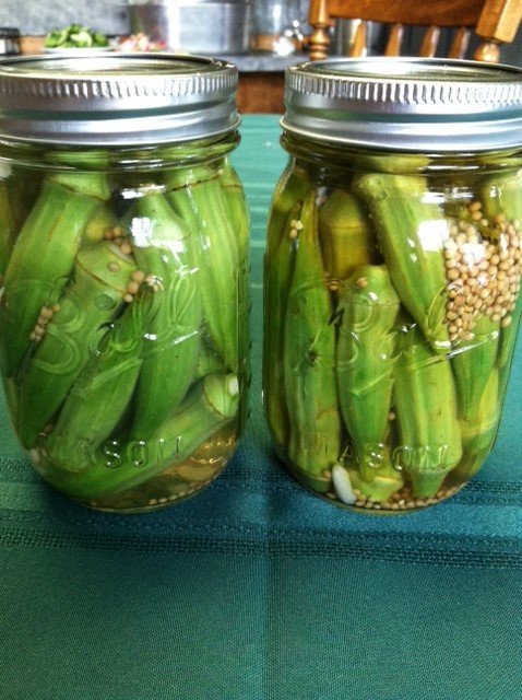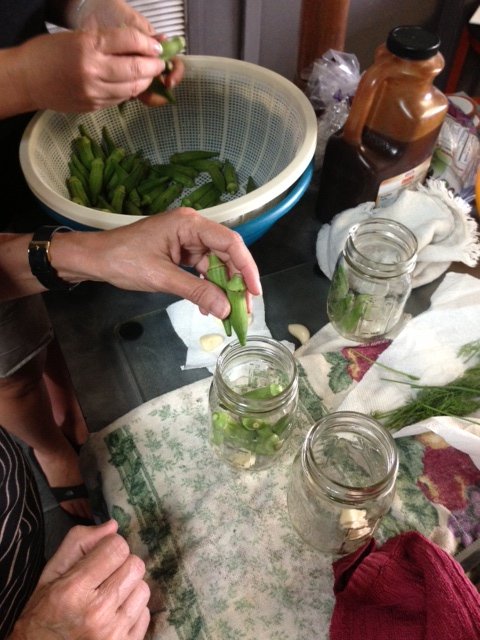Canning and pickling is a tradition passed down through the generations in my family. My great grandmother was known for her famous 14-day pickles. She prepared canned figs, pear preserves, and more. Canning and pickling is a great way to preserve and savor the flavors of summer throughout the year. My cousin Jennifer’s garden was overflowing with okra. She and I ventured out in making pickled okra as it was both of our first time. She and my mom stuffed the sterilized mason jars with okra, a garlic clove, and fresh dill sprigs while I prepared the vinegar mixture.
