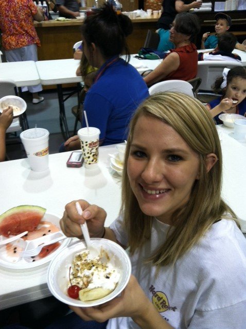 Leaving the kitchen with a feeling of accomplishment, we scurried to church to help the children’s bible study program, Awana. This occasion called for an ice cream social. Yum!