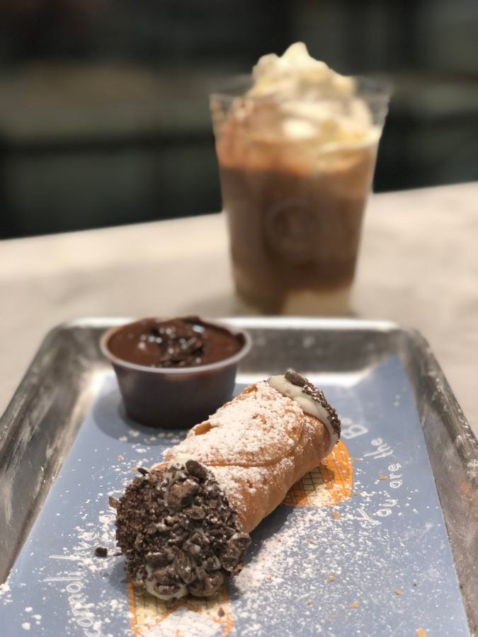 Lastly, we visited the gelato and cannoli station. My face lit up when I saw the pile of fresh cannoli shells waiting to be filled. There isn’t just one option for fillings either. There were like 10! I chose the sheep’s milk ricotta. After trying creamy, silky sheep’s milk ricotta at a NYC restaurant once, I became a huge fan. There is really nothing like it. My filled cannoli then took a dip into some shaved chocolate. I asked for a side of their homemade “Nutella” to enjoy with it because why not.