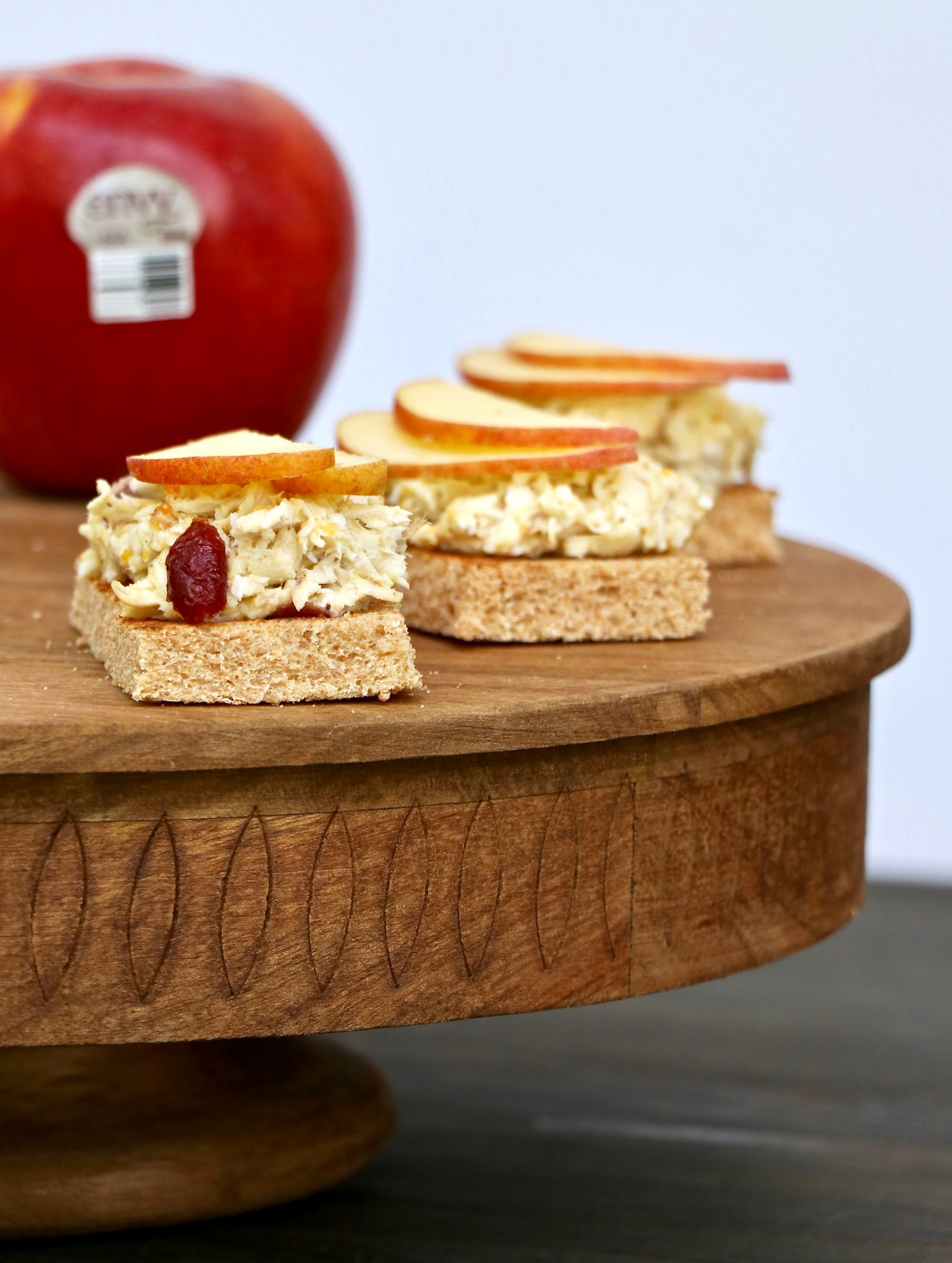 Place an apple slice or two on top of each chicken salad sandwich.