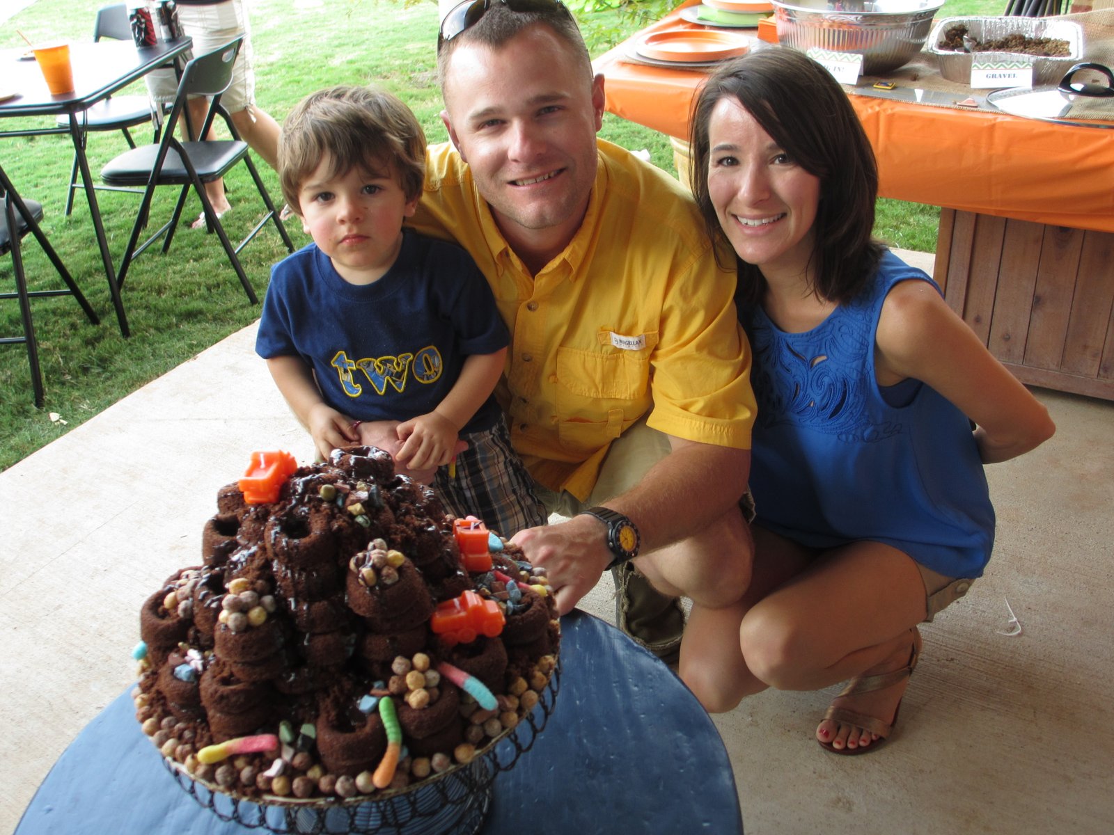 John Michael is like his aunt and loves chocolate! I knew my Best Ever Chocolate cupcake recipe (featured in Whitney Miller’s New Southern Table) would be perfect for his cake. I used this recipe to make mini donut cakes.