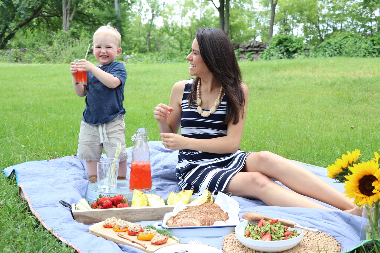 I still enjoy eating outdoors and I love sharing my childhood experience of picnics with my son. I prepared a fun picnic for my son, husband and I on a blanket under a big maple tree in front of our house. We had all kinds of delicious foods to eat.