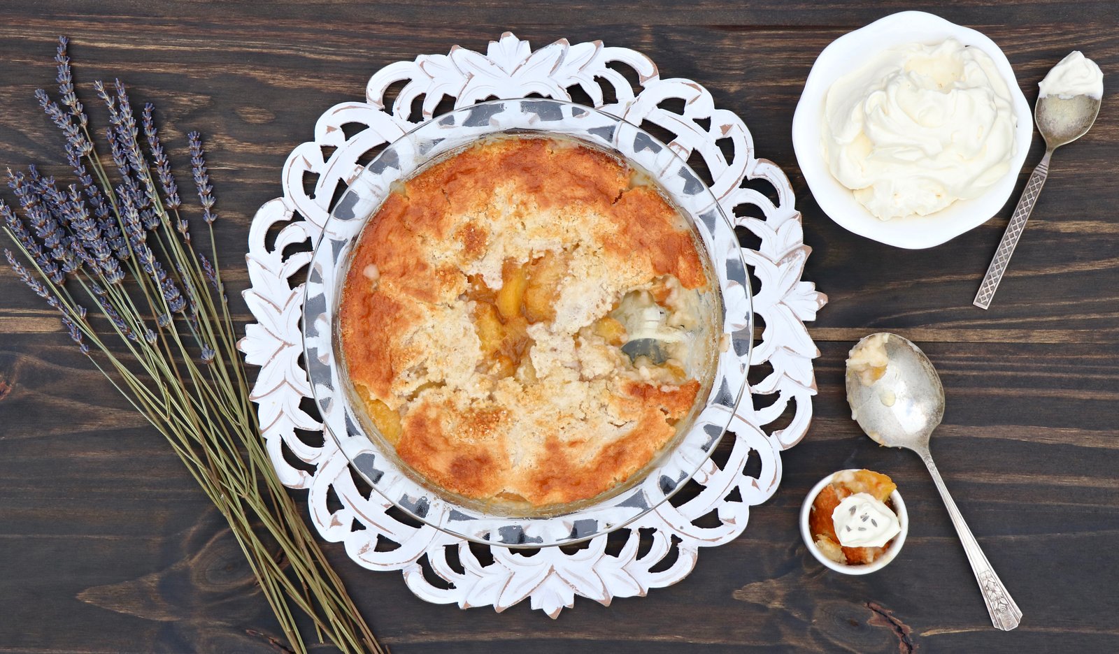Lavender Peach Cobbler with Honey Whipped Cream