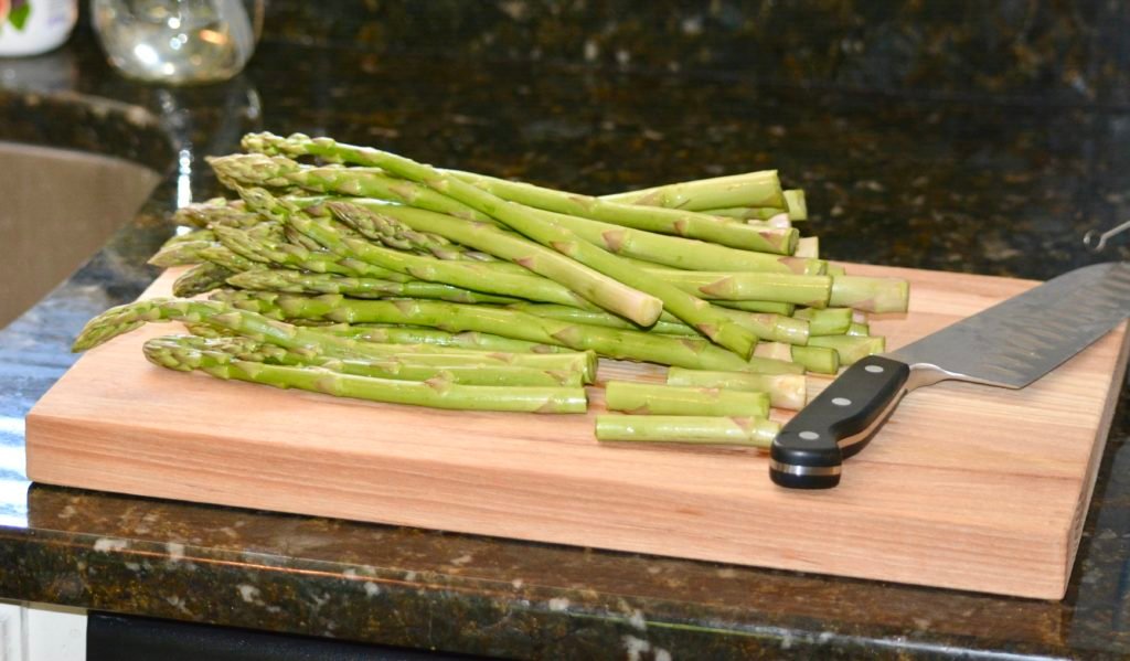 *Tip: When trimming asparagus spears, bend a spear until it snaps. Place this spear next to the others to know where to trim the woody end.