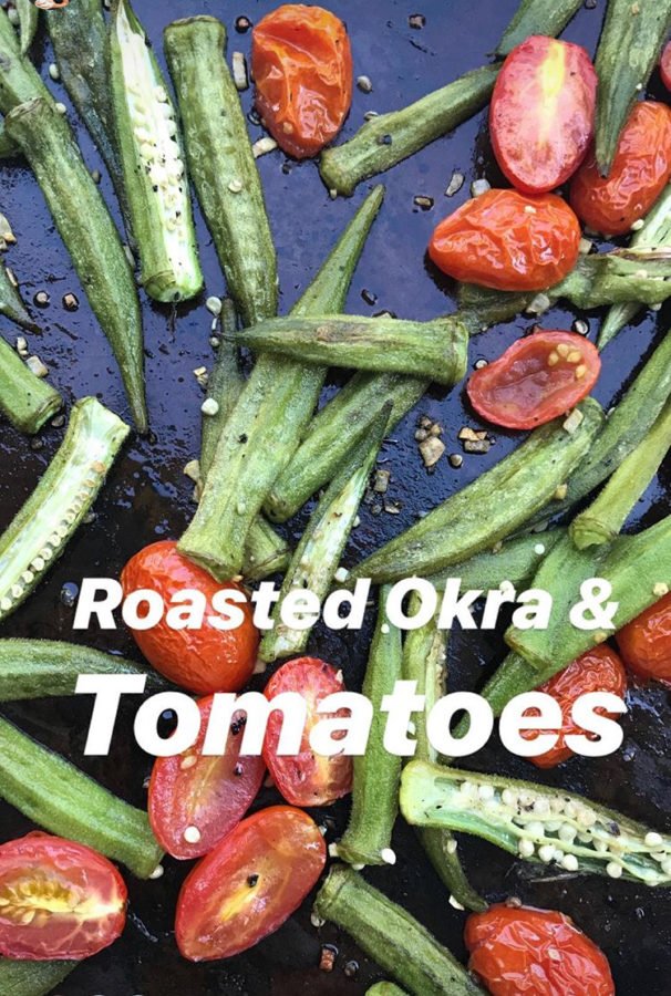This is my version of the Southern side stewed okra and tomatoes. If you are like me and do not enjoy slimy okra, this recipe is for you. By roasting the okra, the okra becomes tender and slightly crispy in the oven.