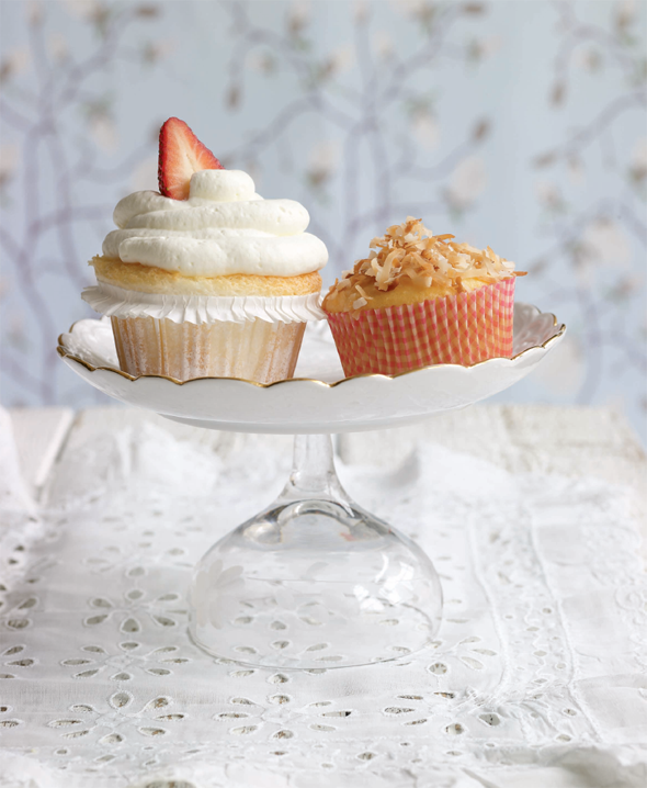 - Pipe whipped cream in a circular motion, onto the tops of each cupcake. Top each cupcake with a strawberry slice. Serve immediately or refrigerate until ready to serve.