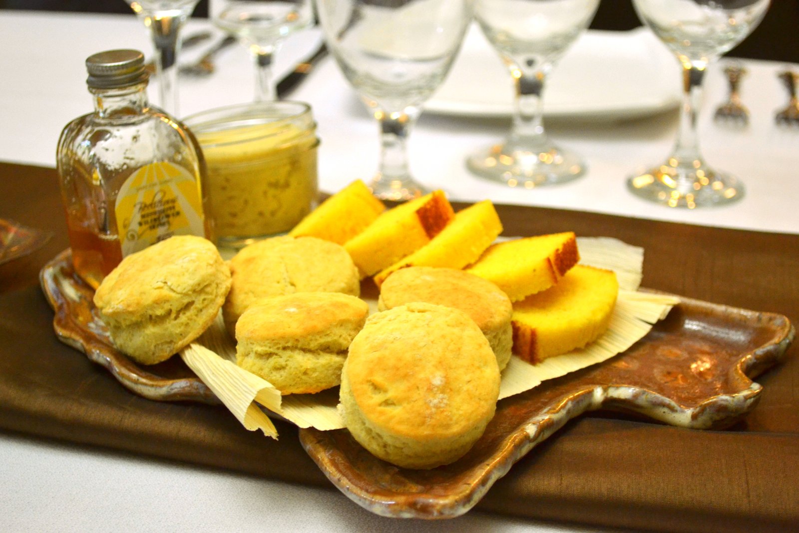 I have showcased four types of honey in the picture above. For medicinal purposes, local honey is great for those with allergies. Beelicious Honey is out of Hattiesburg, MS just up the road from where I live.  In January, I was the opening night chef at Chefdance, a 5 night culinary event within the Sundance film festival. I wanted to give the diners a taste of Mississippi with not only the dishes served but with the ingredients used as well. Beelicious Honey was gracious enough to provide me with their small bottles of honey to go with each of my Southern bread boards to accompany the mini cornbread loaves and olive oil biscuits.