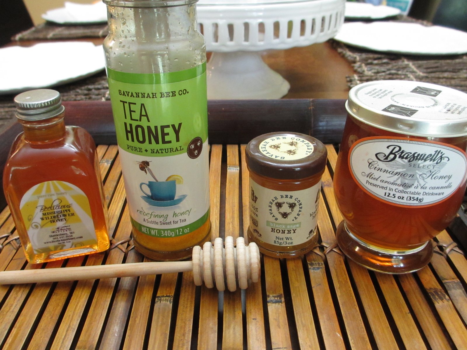 The last honey pictured is Braswell’s Cinnamon Honey. It is the darker of the honeys pictured so that means it will have more of a stronger honey flavor. The cinnamon definitely comes through. I would use some of this honey mixed with a classic honey in making granola. It would also be good drizzled over a warm buttered slice of toast.